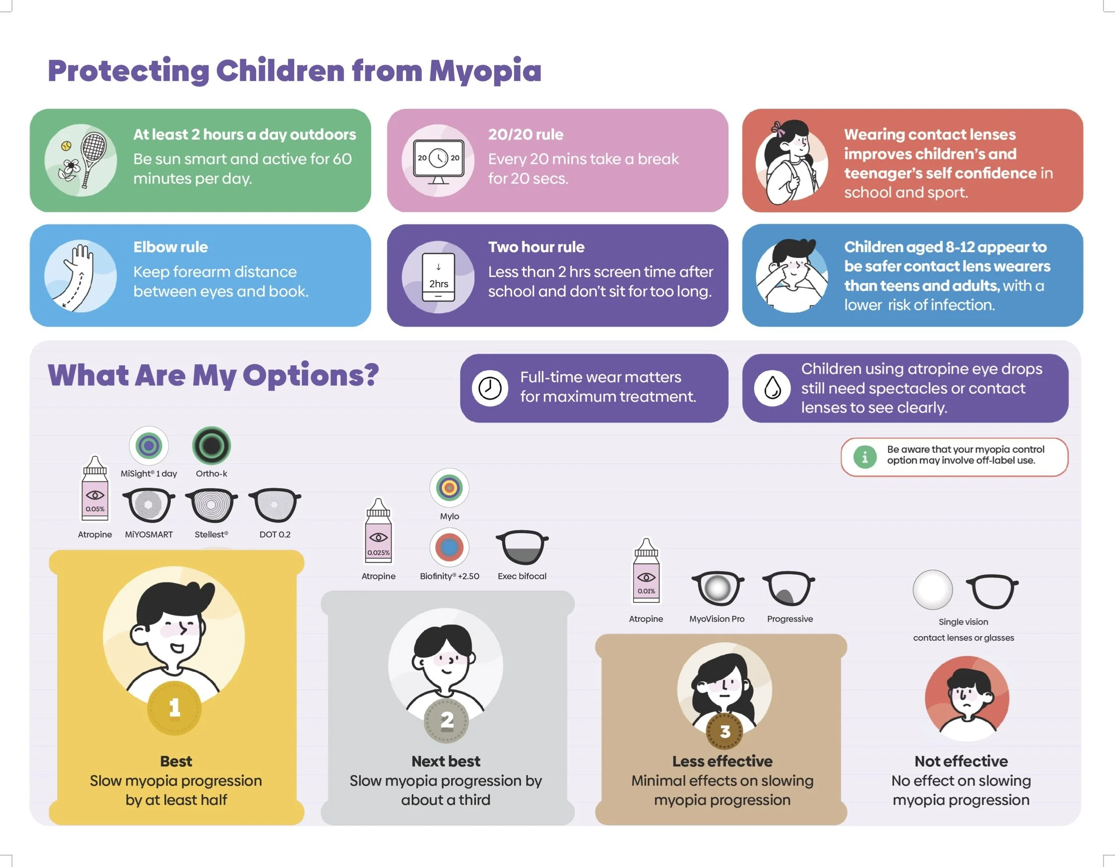 Infographic below shows evidence based recommendations from Myopia Profile. Up to date as of 2024.